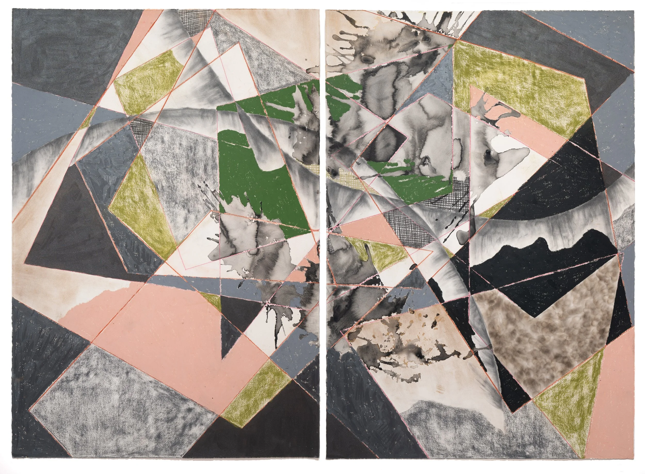 In this new body of work, Rhame continues her exploration of what she terms “biograms”—a concept borrowed from Gilles Deleuze describing a diagram or map of the environmental, psychological, biological, and social topographies that shape a being. Working primarily on paper, Rhame constructs visual cartographies of relational existence, charting the unstable and ever-shifting terrain of becoming.
